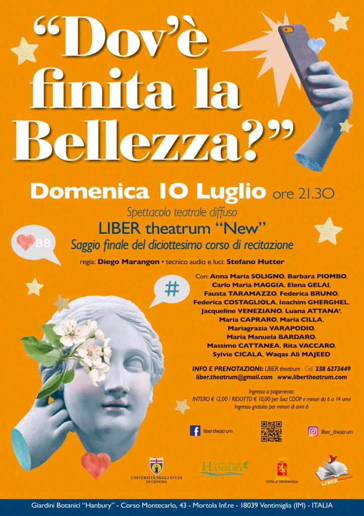 Saranno i Giardini Botanici Hanbury di Ventimiglia in frazione Mortola Inferiore a ospitare il saggio spettacolo teatrale del diciottesimo corso di recitazione di LIBER theatrum, in programma Domenica 10 Luglio alle ore 21.30.