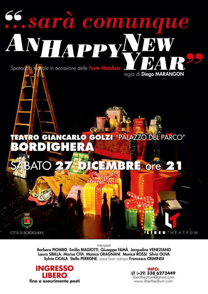 Anche Liber Theatrum in scena nell’ormai vicinissimo periodo natalizio con uno spettacolo, in particolare dedicato al nuovo anno, dal titolo “…sarà comunque AN HAPPY NEW YEAR” per la regia di Diego Marangon. Con il patrocinio della Città di Bordighera, l’appuntamento è fissato nella serata di Sabato 27 Dicembre 2025 alle ore 21.15 al Teatro Giancarlo Golzi – Palazzo del Parco di Bordighera con ingresso libero e gratuito.